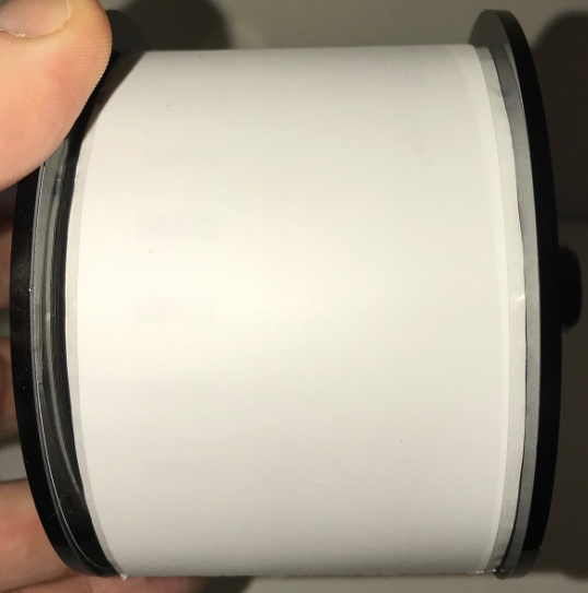 6. Load the new roll of labels onto the spool, then put the other end of the spool back on tightly for a secure fit on either side of the roll.