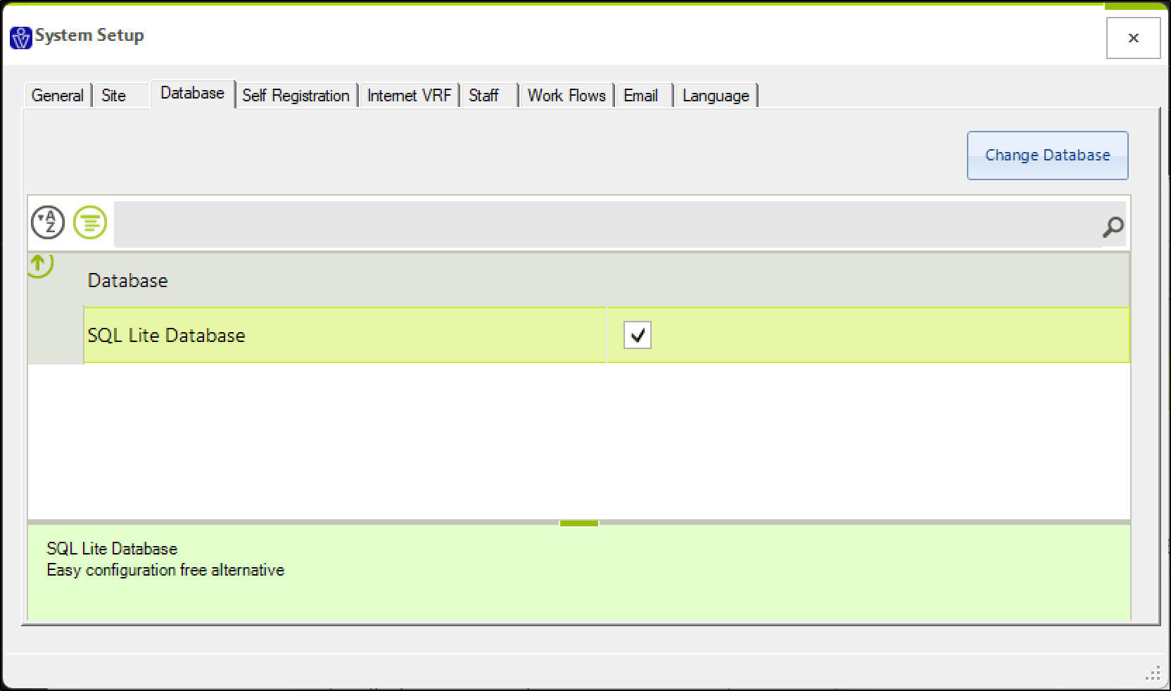 SQL Lite Database | When ticked, VisitorRego uses an embedded SQLite database (default). Untick this box to connect to a Microsoft SQL Server database instead. |