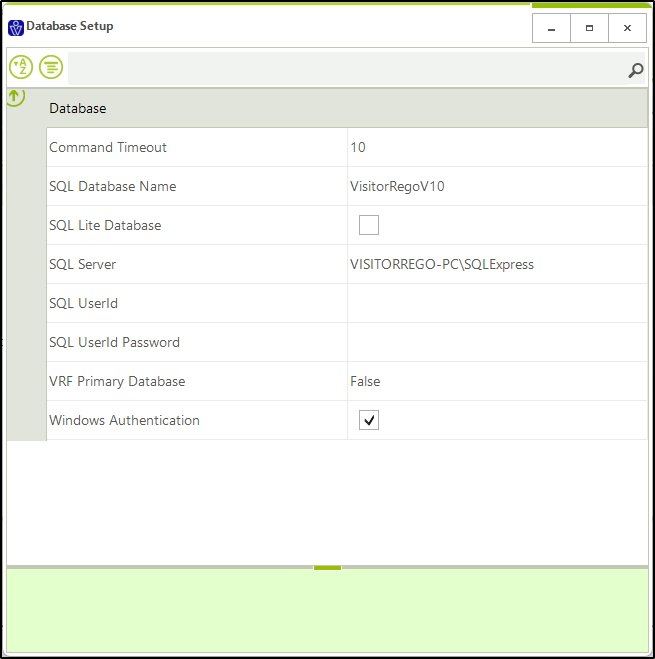 SQL Database Name | The name of the database VisitorRego will connect to. This setting is only applicable when using a SQL Server database. |