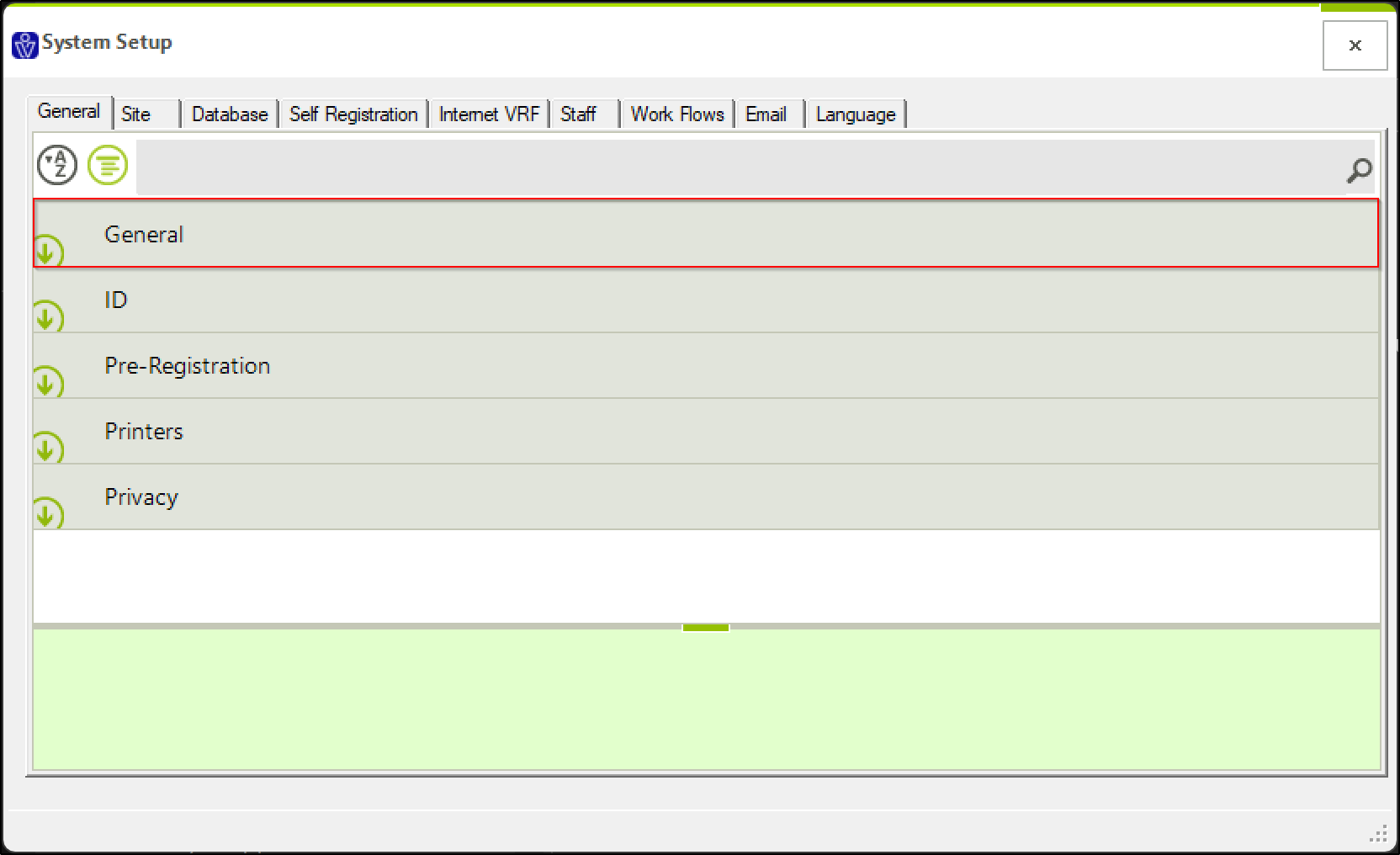 1. From VisitorRego's Admin mode select Options > General tab, then expand the General section.