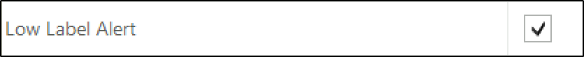 Low Label Alert checkbox.