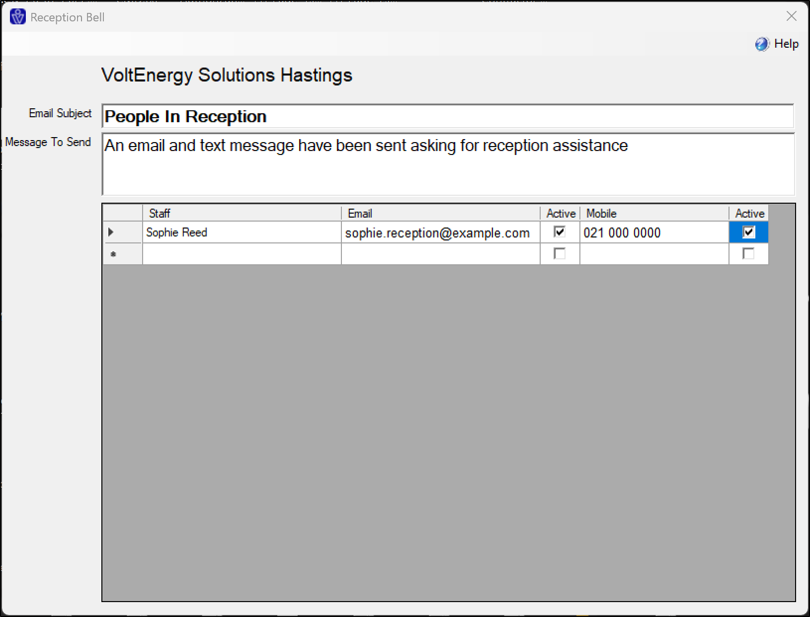 Once configured, when the Reception Bell button is pressed, notifications will be sent to the designated staff members.