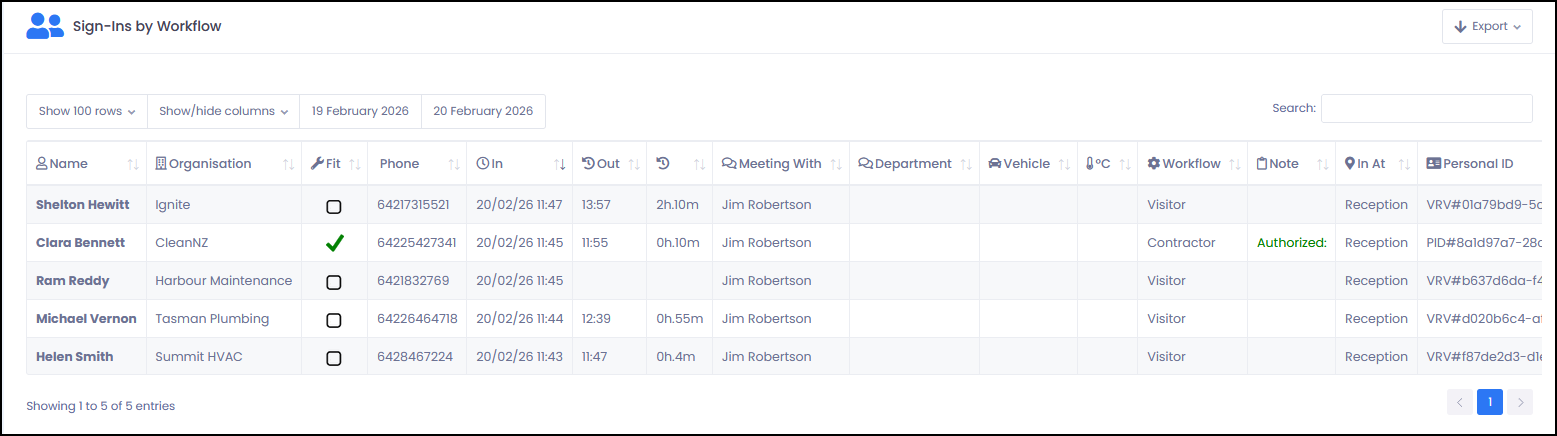 Your desired column view and records per page will be saved in your browser. The same view will be displayed the next time you view Sign-Ins by Workflow.