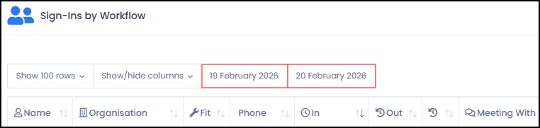 The amount of sign-in records that are shown per page can be changed by clicking on the Show 100 rows drop-down field, then by clicking on the number of records you would like to be shown.